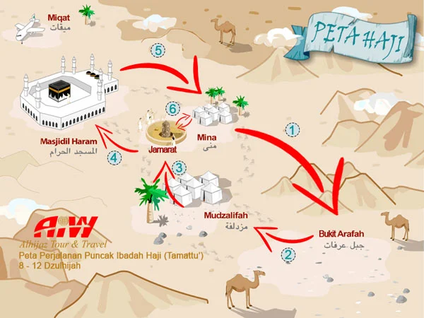 • 10 Dzulhijjah Melontar Jumroh Aqobah – Tawa Ifadhah di Masjidi Haram – kembali ke Tenda Mina